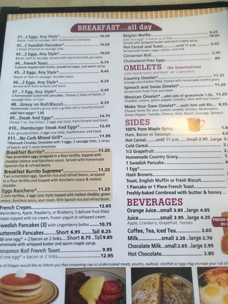 Three delicate Crepes wrapped around your choice of Fruit: Marionberry, Apple, Raspberry, or Blueberry. Topped with Whipped Cream or Ice Cream...The Choice is Yours!